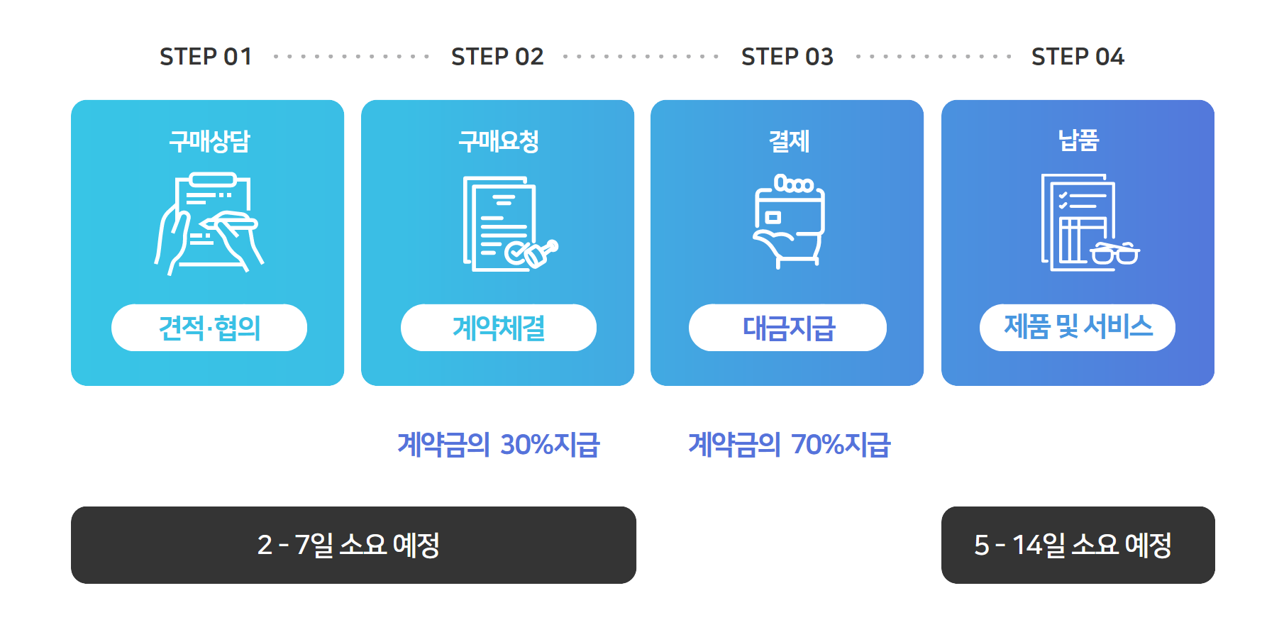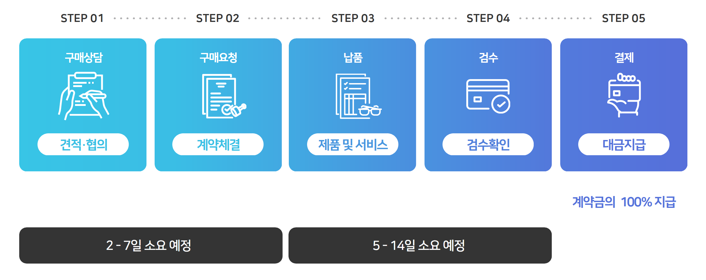 * 기업조달등록 가능 (자체 조달시스템 보유시 검수후 대금지급)