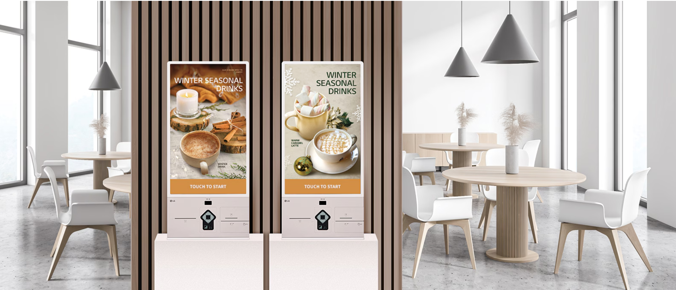 상세한 정보와 생생한 상품 이미지 전달로 메뉴 선택에 도움을 줍니다. 대기 모드 시 광고 스크린으로 활용할 수 있어 홍보 효과를 누릴 수 있습니다.